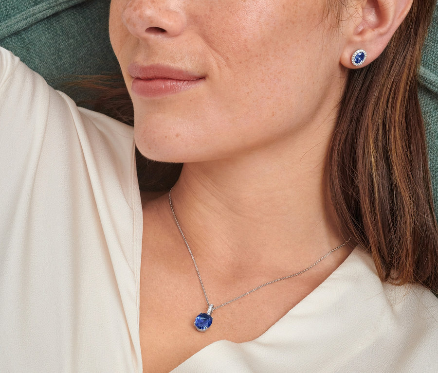 Retiazka, striebro 925, ródiované, s modrým krištáľom a zirkónmi