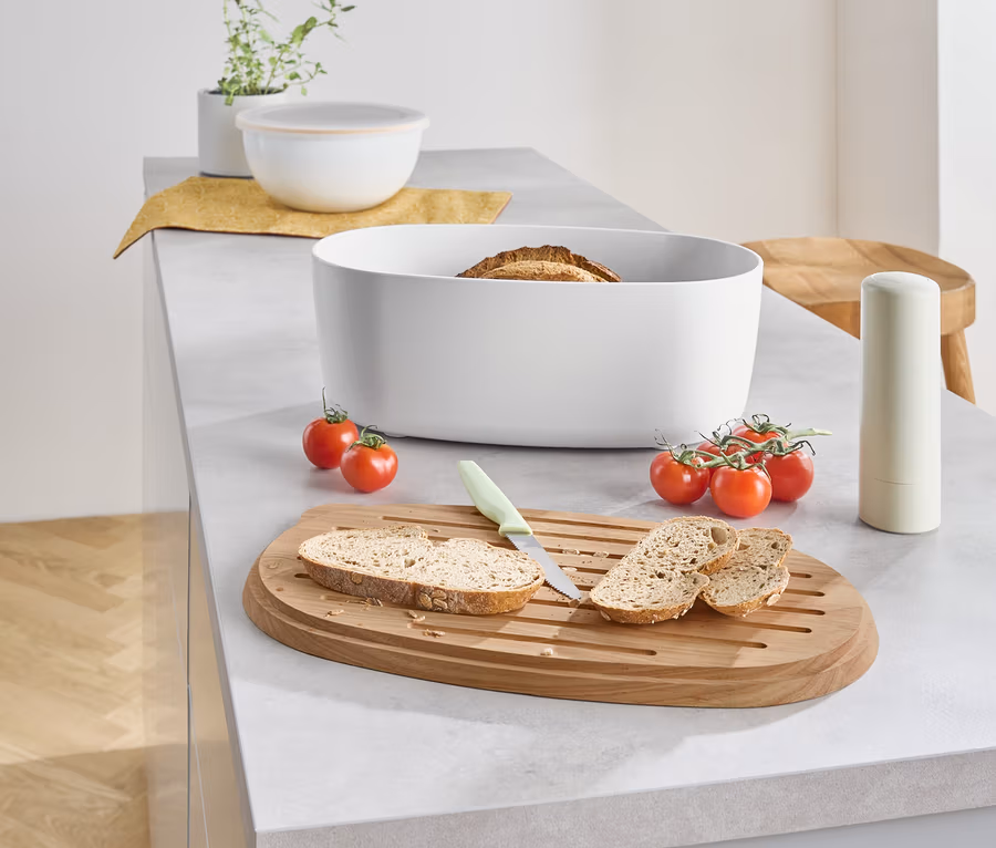 - Chlebník zo stabilného plastu s protišmykovými silikónovými nožičkami