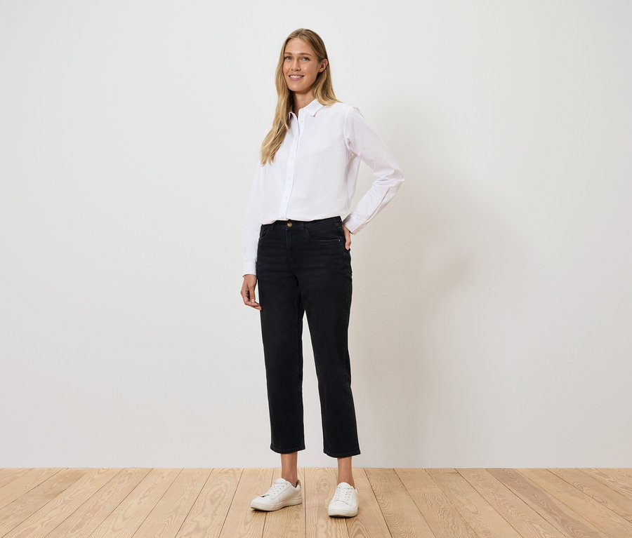 • Klasický strih | Široké nohavice| Mierne zvýšený pás| Skrátená dĺžka