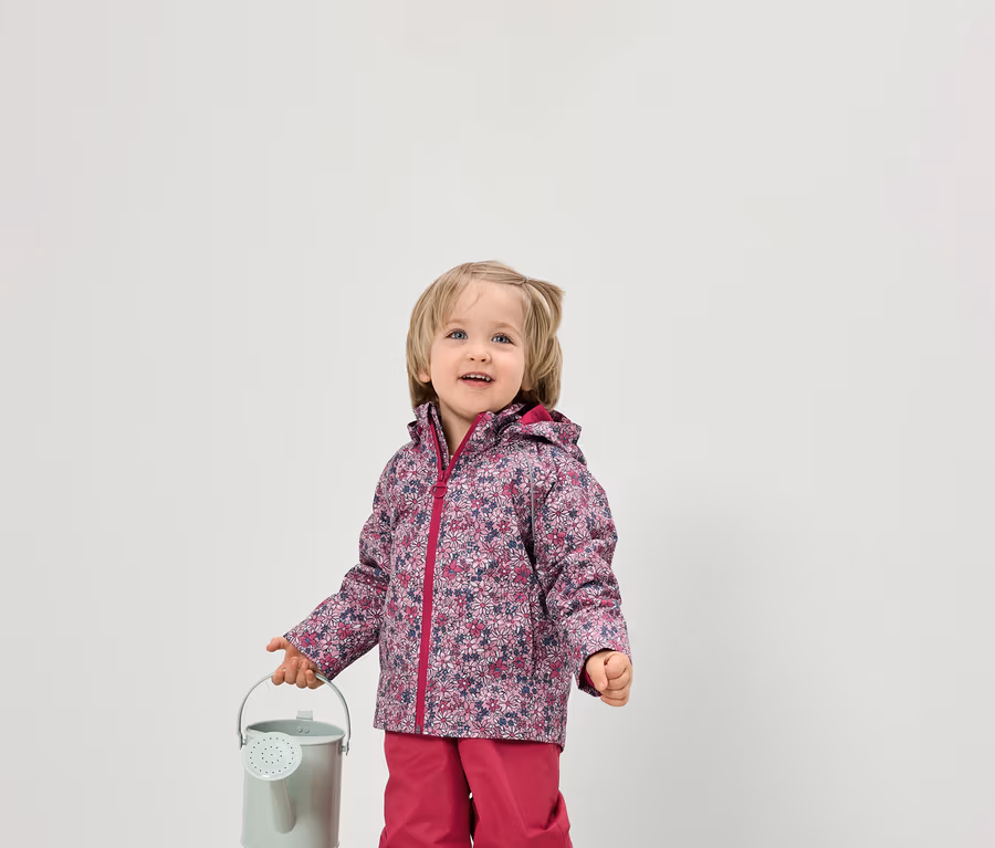Detská termobunda do dažďa s flísovou podšívkou, kvietkovaná