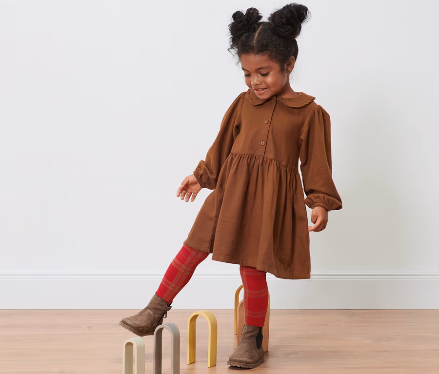 Detské tkané šaty, koňakové
