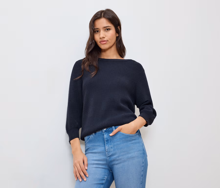 Pulóver zo štruktúrovanej pleteniny, tmavomodrý