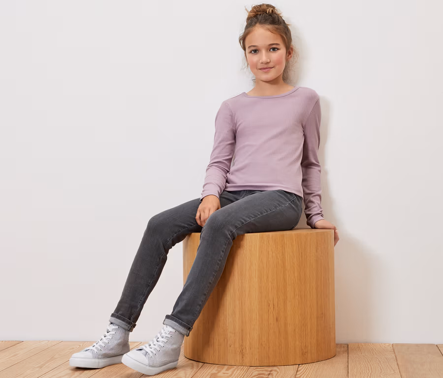 - Detské nohavice s 2 bočnými falošnými vreckami vpredu a 2 zadnými vreckami