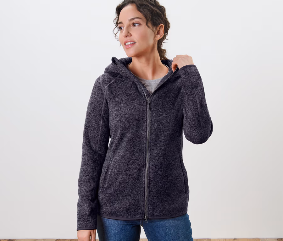 Bunda z pleteného flísu s kapucňou, tmavomodrá s melírom