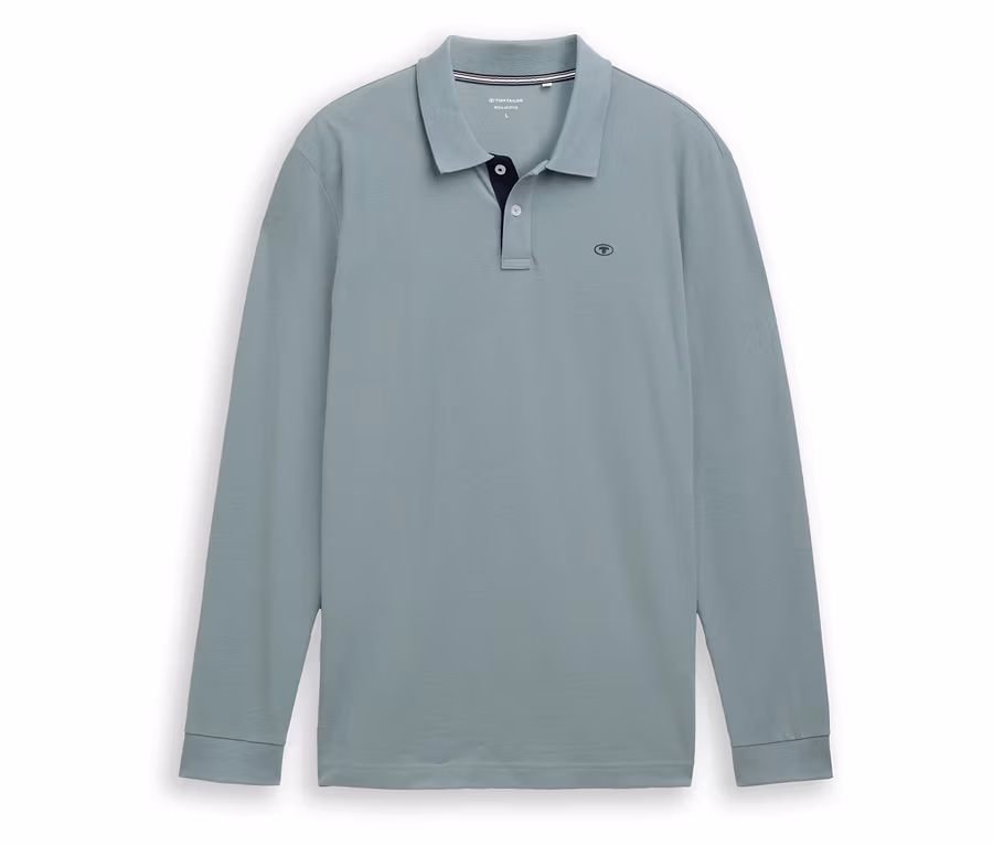 Piké polokošeľa s dlhým rukávom Tom Tailor, mätová sivá