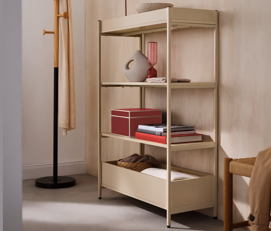 - Vrátane materiálu na upevnenie na stenu, chráničov podlahy s nastaviteľnou výškou, montážneho materiálu a návodu na zostavenie
