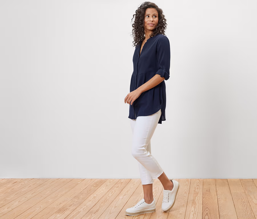 - Tunikový výstrih s jemným stojačikom