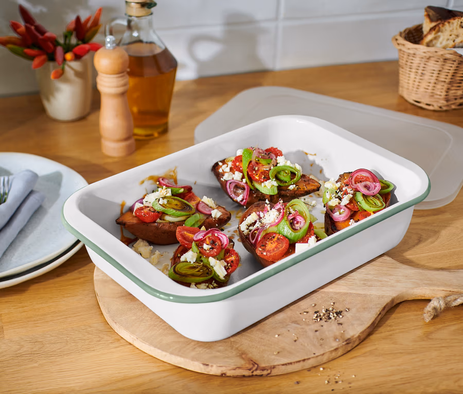 Smaltovaná zapekacia misa s vekom