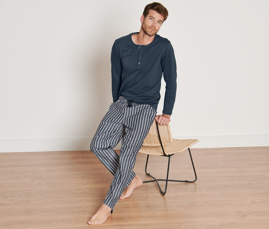 - Horný diel z mäkkého jednoduchého džerseja, nohavice z tkanej ľahkej bavlny