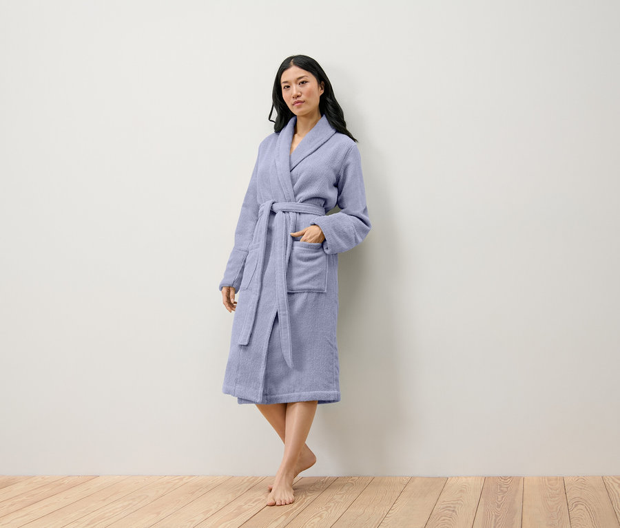 • So šálovým golierom, s 2 našitými vreckami a opaskom na zaväzovanie