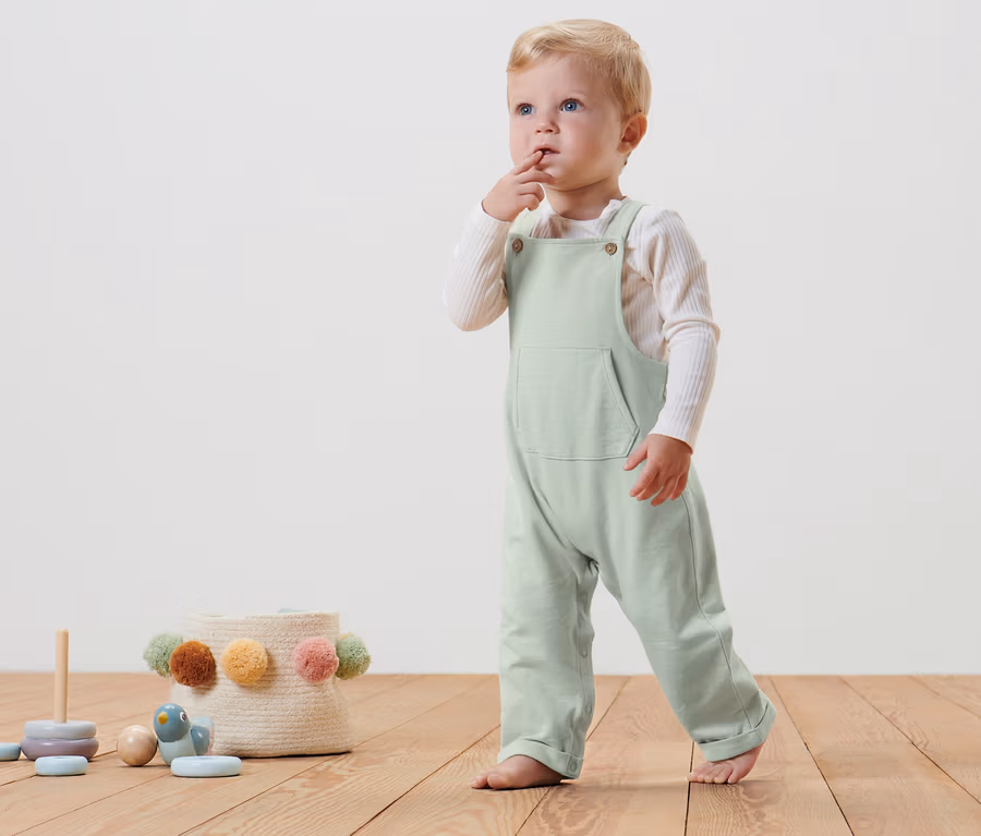 - Veľ. 50/56 – 86/92 možno vďaka patentným gombíkom v rozkroku kompletne rozopnúť, čo uľahčuje obliekanie a vyzliekanie
