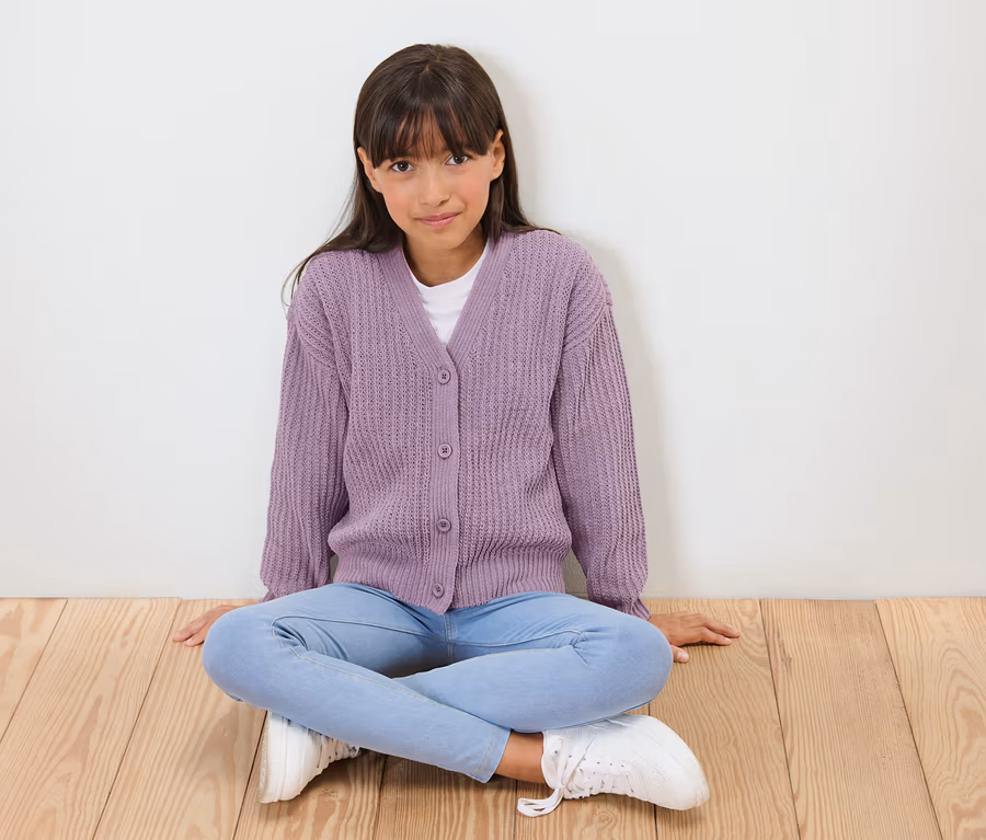 Detský ženilkový pletený svetrík, levanduľový
