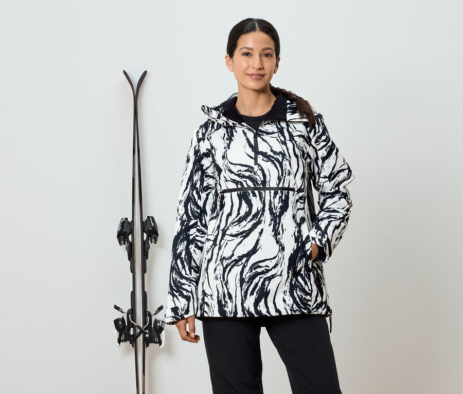 Lyžiarska bunda s polovičným zipsom, čierna/biela