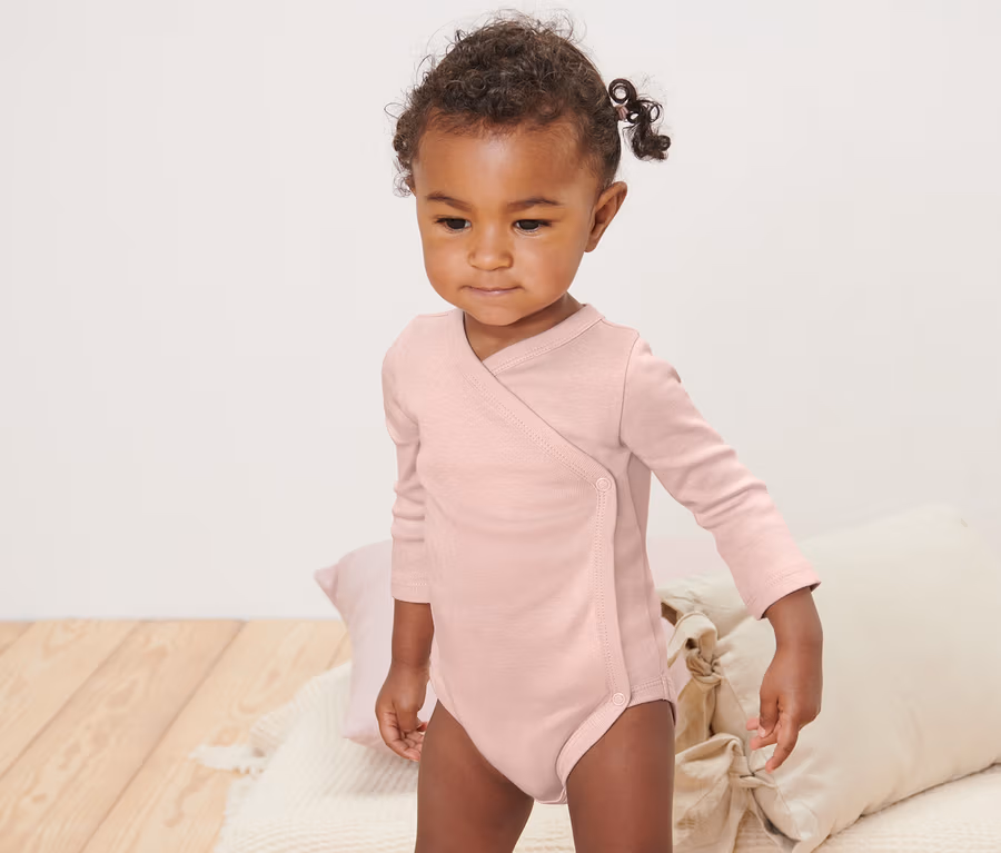- Vo veľkosti 50/56 – 62/68 je body zavinovacie: dá sa úplne otvoriť vďaka patentným gombíkom naboku a v oblasti rozkroku