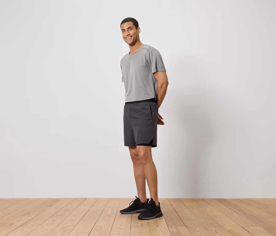 - Tkané šortky s integrovanými legínsami