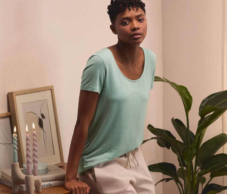 - 85 % viskóza (LENZING™ ECOVERO™), 10 % metalizovaný polyester, 5 % elastan