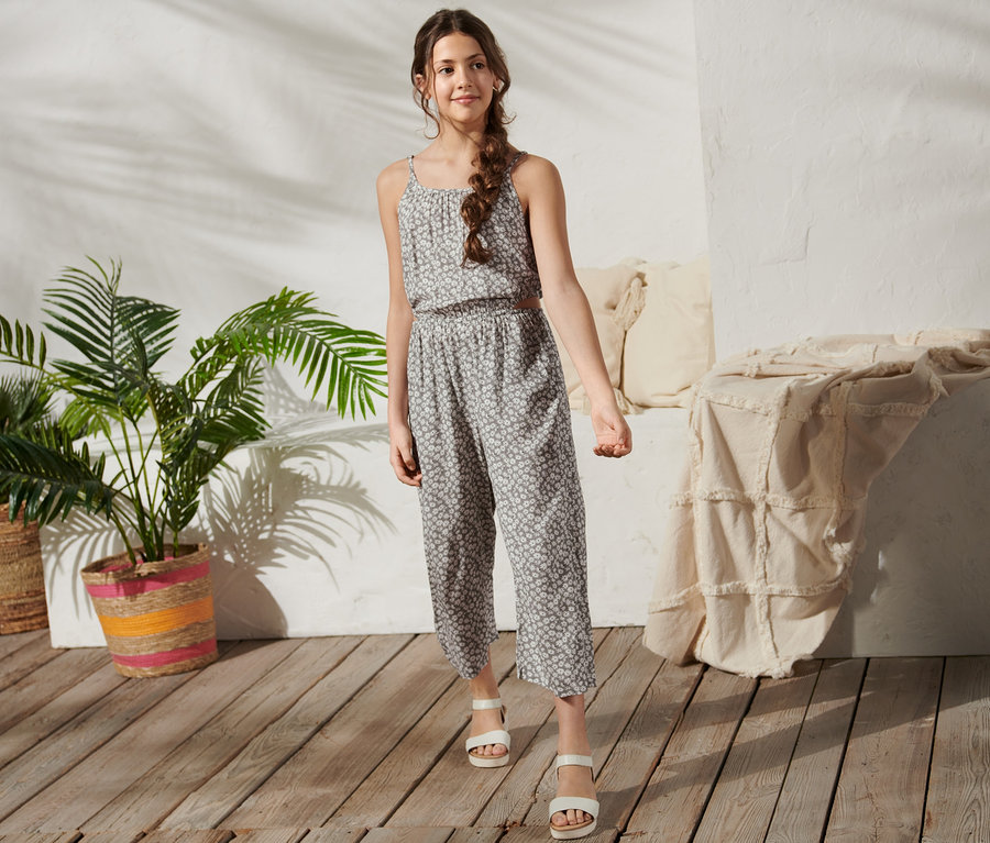 - Tkaný overal s celoplošnou kvetinovou potlačou
