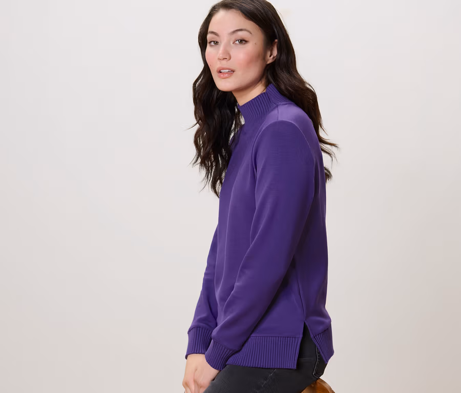- Široké rebrované lemy na stojačiku, koncoch rukávov a spodnom okraji