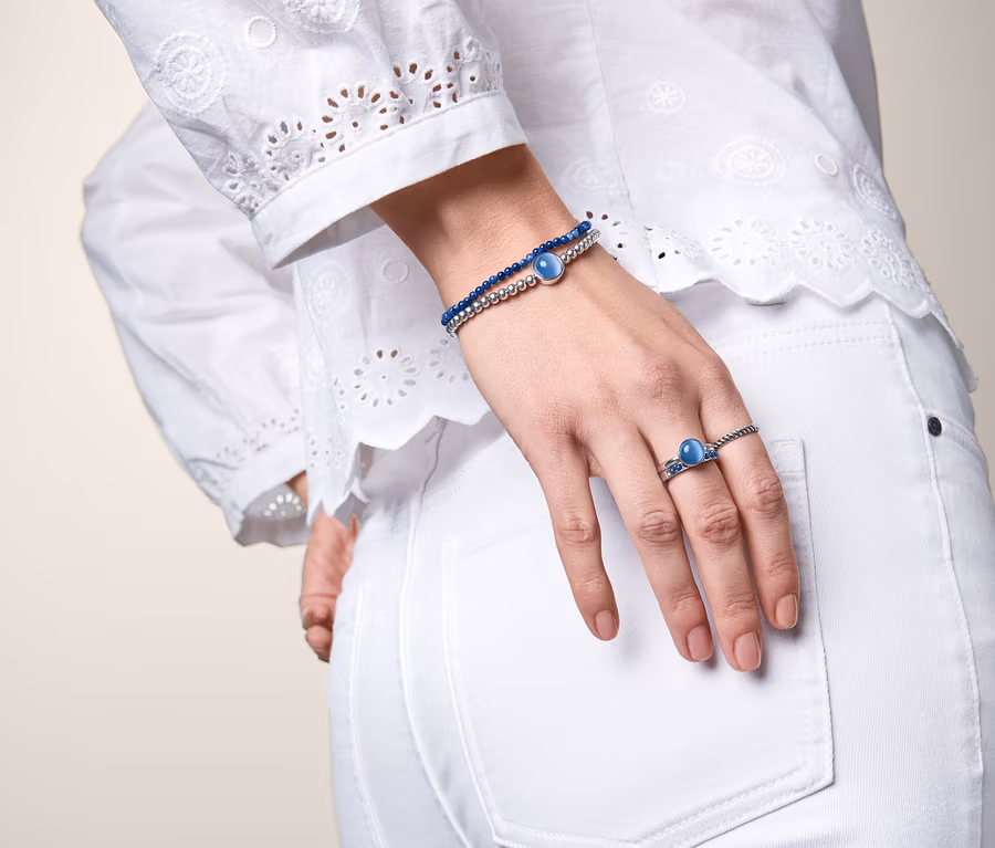 - 1 guľôčkový náramok z ušľachtilej ocele s kamienkom Mačacie oko vo sviežej modrej farbe
