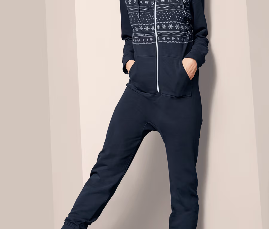 S týmto pohodlným domácim overalom Vám zima prejde v znamení ležérnosti. Potlač s nórskym vzorom na hrudníku a v kapucni vyčaruje úžasnú severskú atmosféru a overal skvele dopĺňajú klokanie vrecká a našité lemy na rukávoch a koncoch nohavíc. Príjemne mäkká bavlnená zmes je vďaka zdrsnenej vnútornej strane výnimočne hrejivá a hebučká.