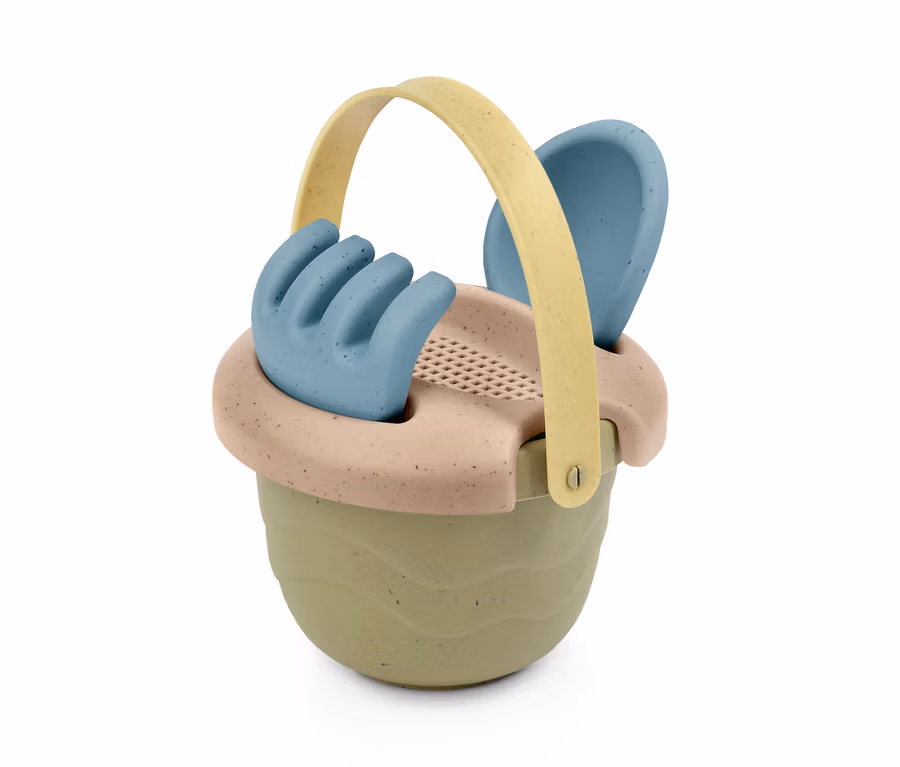 - 4-dielna súprava, ktorú tvoria vedierko, lopatka, hrabličky a 1 formička