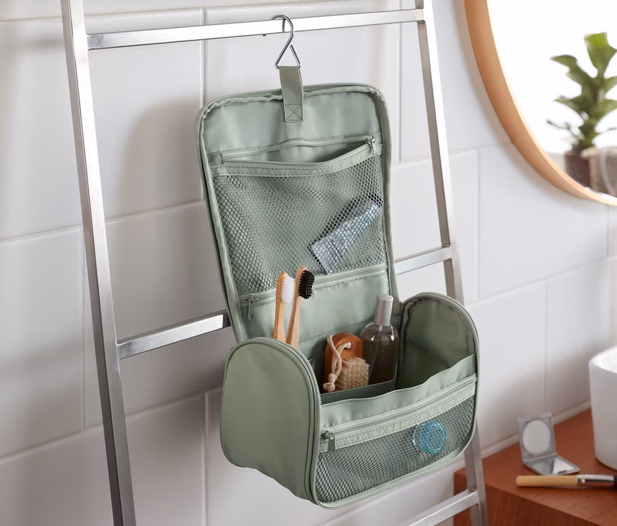- Vnútri s 2 vreckami na zips a ďalšími priehradkami na kozmetické výrobky dennej potreby