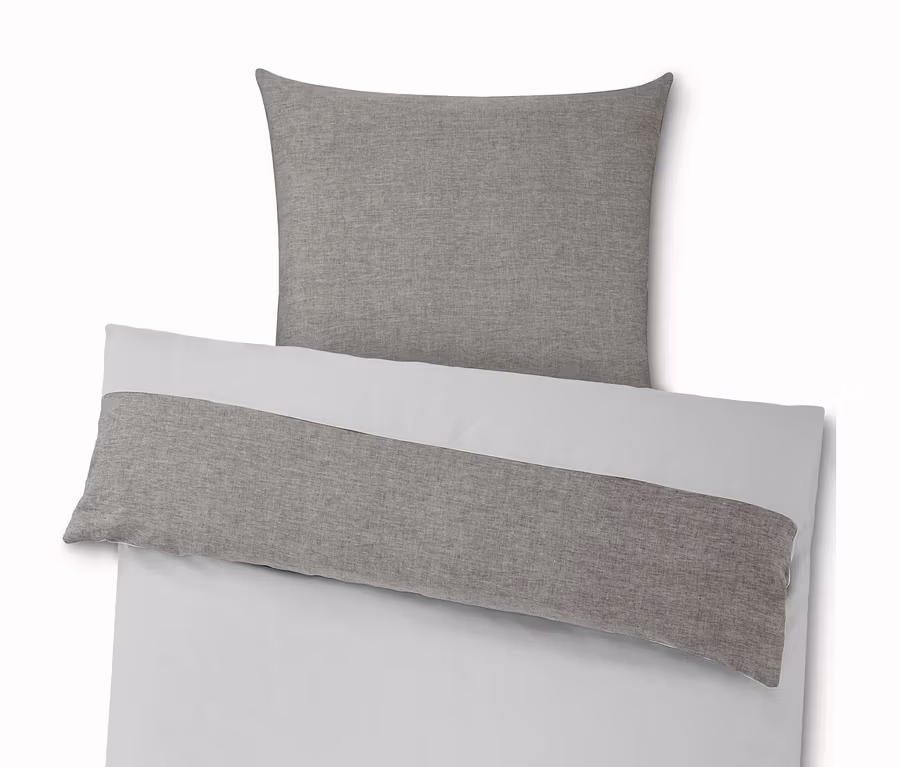 Posteľná bielizeň nadchne aj rozličnými odtieňmi sivej – a výnimočným melírovaným efektom. Pomocou zapínania na zips bude posteľná bielizeň za okamih navlečená na vankúš a prikrývku.