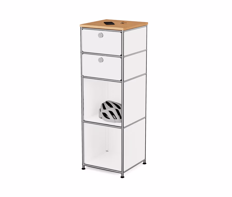 Úzka kovová komoda »CN3« s drevenou doskou a 2 zásuvkami, biela