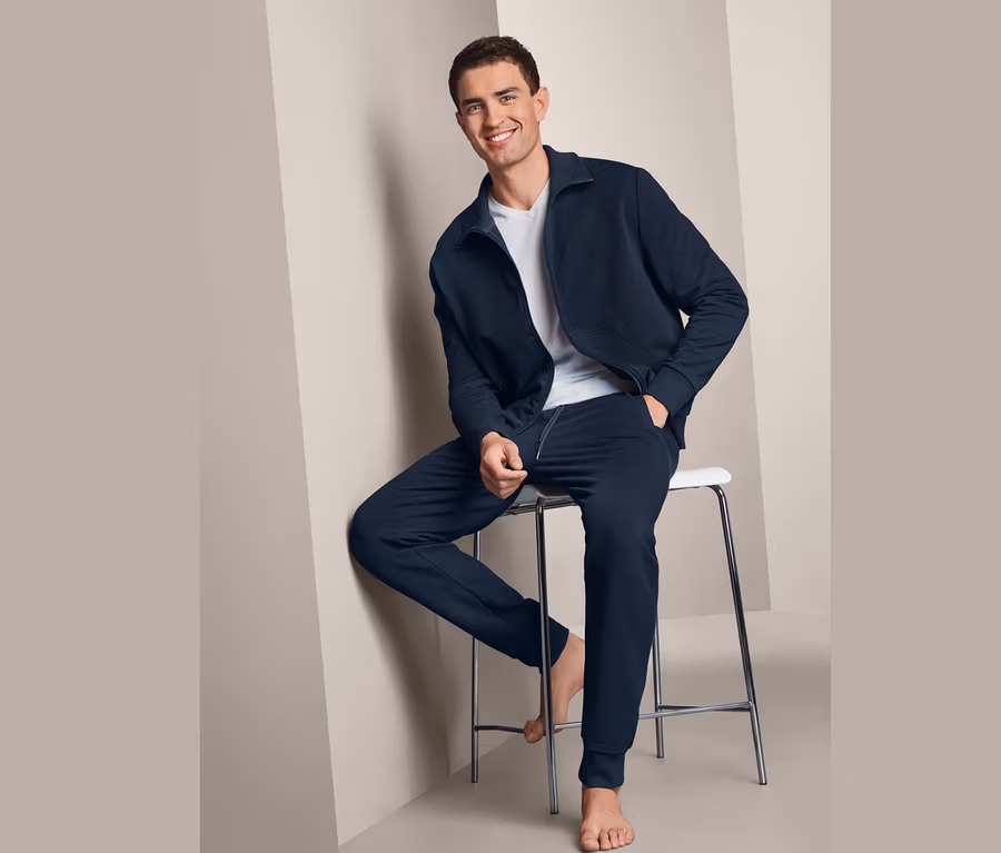 Do tejto domácej súpravy by páni najradšej vkĺzli hneď po príchode domov. Príjemne mäkká zmes bavlny a elastanu je úžasne pohodlná a skvele prilieha na telo pri každom pohybe. Elastan zároveň zaisťuje, že súprava sa výborne nosí, dobre drží tvar a perfektne sedí. Mäkučká dvojdielna súprava pre pánov je navyše vyrobená s biobavlnou.