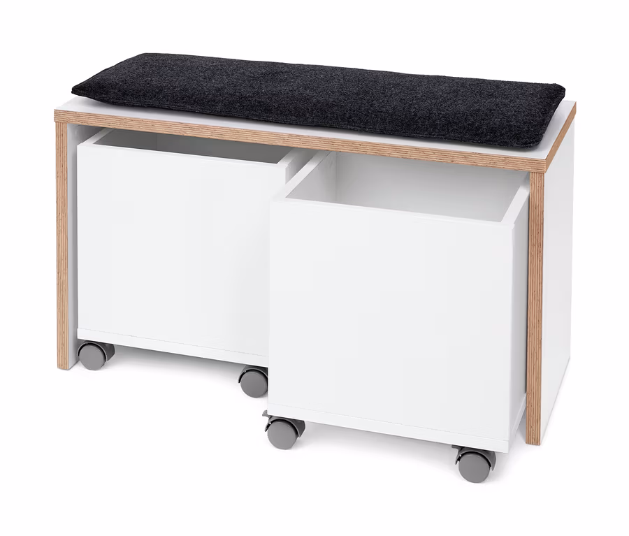- Lavica a úložné boxy matná biela