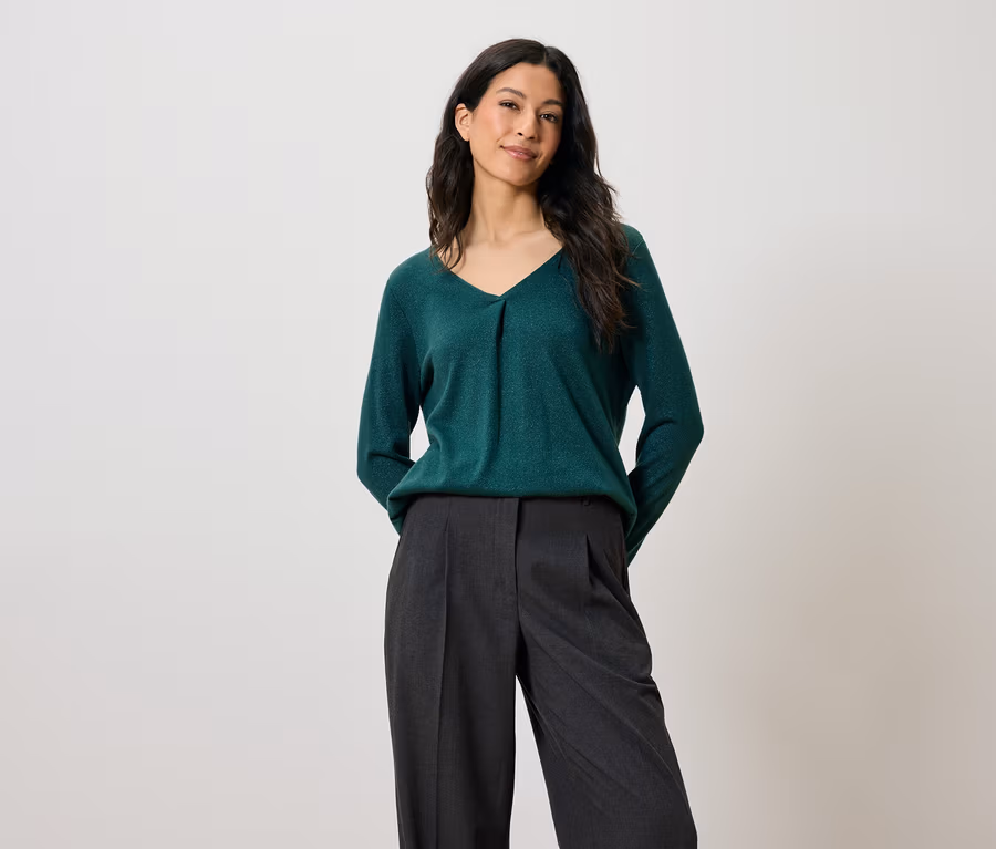 Trblietavé blúzkové tričko, petrolejové
